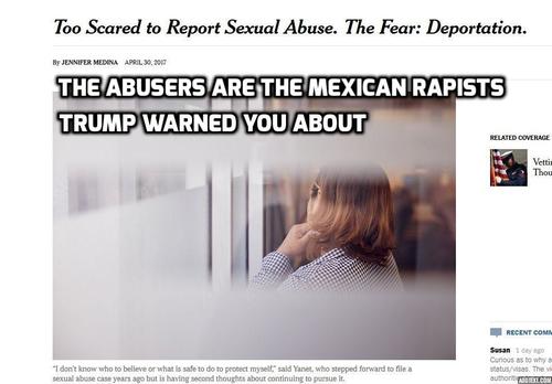 So the U visa for non-citizen crime victims is an accepted practice, not some oddball offshoot of immigration law that doesn’t work. So why does the New York Times drone on at length about illegal aliens freaking out that they might get a free ride home to their country of citizenship? It is simply an excuse to impugn the new president as the architect of Fear among suffering foreigners. It seeks to conflate a single instance of a women being arrested by ICE “moments after she received a protective order” into a whole trend.