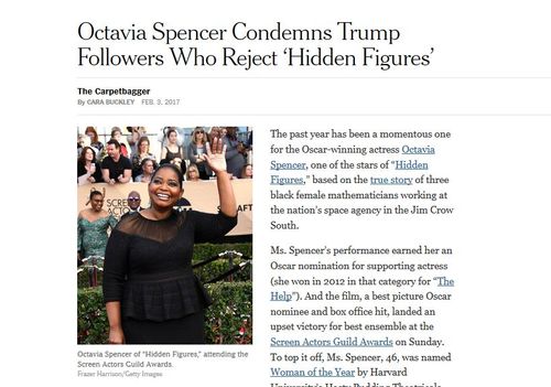 The NYT headline? “Octavia Spencer Condemns Trump Followers Who Reject ‘Hidden Figures.’”