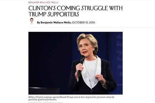 CLINTON’S COMING STRUGGLE WITH TRUMP SUPPORTERSBy Benjamin Wallace-Wells, OCTOBER 10, 2016