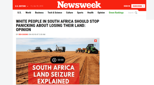 Anyway, this Newsweek opinion piece then goes on to methodically explain why white farmers in South Africa ought to be concerned over the possibility of losing their land.