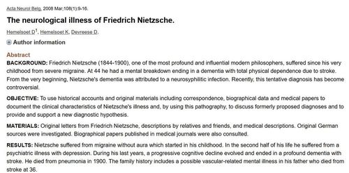 Nietzsche himself was not very healthy, suffering from migraines and depression, and then losing his mental powers at age 44. But he was heroically active, writing a huge number of books in a short lifetime.