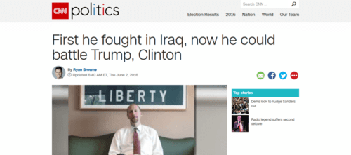 He was promoted to the rank of major in 2013 with his reserve obligation ending in April 2014, after which he transferred to the Inactive Ready Reserve.[First he fought in Iraq, now he could battle Trump, Clinton, by Ryan Browne, CNN, June 2, 2016]