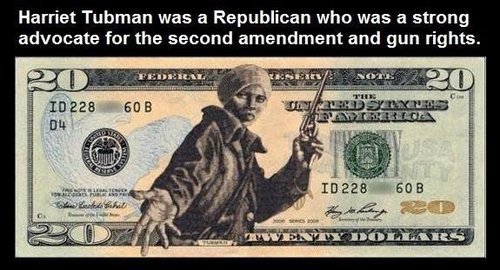 Being illiterate, Tubman likely didn't know what the Second Amendment was, and to the degree she was a Republican, it wasn't because she subscribed to what the GOP peddles now. Or then, for that matter.