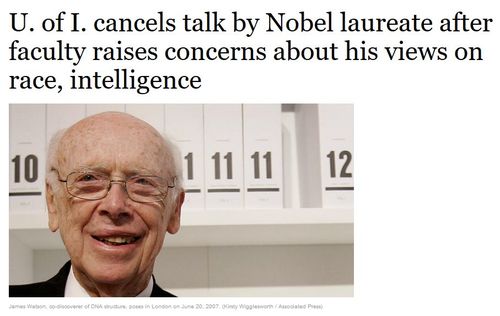 U. of I. cancels talk by Nobel laureate after faculty raises concerns about his views on race, intelligence[Links added—Comment at Unz.com]Associated Press