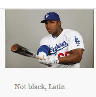 To prove that black Americans are as interested in nationality as much as they are race, when black Americans complain about the lack of blacks in MLB, they are not mollified by the presence of black or mulatto Spanish language native Caribbeans or Latinos. They mean black Americans.If Yasiel Puig’s distant ancestors were dropped off the slave ship in Virginia instead of Havana, he would be named Darnell Richardson, and be lauded as an example of blacks in MLB.