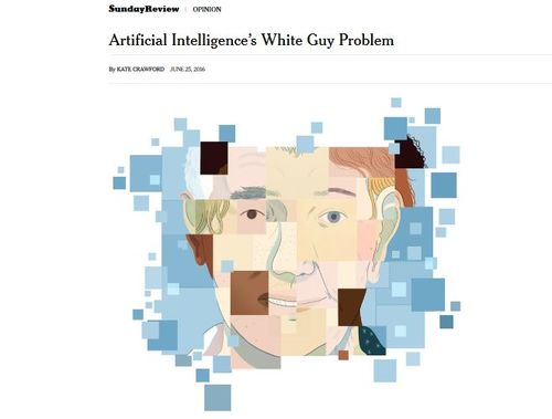 Artificial Intelligence’s White Guy ProblemBut, obviously, it couldn’t possibly have anything to do with blacks being more likely to commit crimes in the future. It couldn’t possibly be that reality is racist because that would be racist.By KATE CRAWFORD JUNE 25, 2016