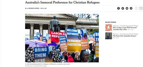 Australia’s Immoral Preference for Christian RefugeesAnd here’s the big ending:By A. ODYSSEUS PATRICK MAY 3, 2017