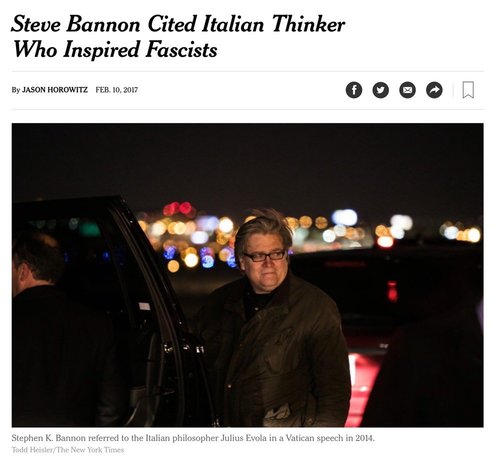 Steve Bannon Cited Italian Thinker Who Inspired FascistsMany, many words on who Ebola was ensue, followed, finally, by this on what exactly Bannon said about him:By JASON HOROWITZ FEB. 10, 2017