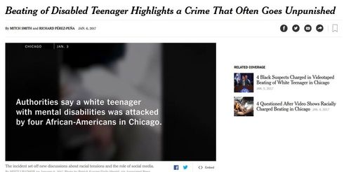 Beating of Disabled Teenager Highlights a Crime That Often Goes UnpunishedAnd from the opinion pages of the NYT:By MITCH SMITH and RICHARD PÉREZ-PEÑA JAN. 6, 2017