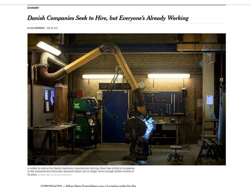 Danish Companies Seek to Hire, but Everyone’s Already WorkingBy LIZ ALDERMAN FEB. 28, 2017