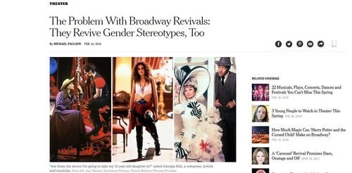 The Problem With Broadway Revivals: They Revive Gender Stereotypes, TooWhen everybody knows they should be prolematicizing romantic relationships between women and men.By MICHAEL PAULSON FEB. 22, 2018
