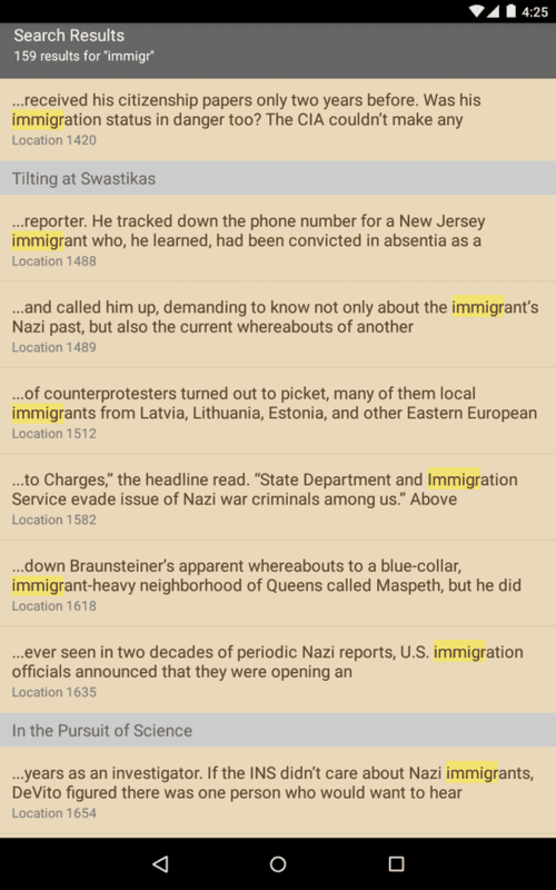 But it doesn't use the word "immigrant" or "immigration" to describe the process by which they entered the US. Which is odd, because Lichtblau's book, The Nazis Next Door: How America Became a Safe Haven for Hitler’s Men, uses words starting with "immigr" 159 times. (See a screenshot of that, from my Android tablet.) It must be an instance of the Times's pro-immigrant bias—if someone is a villain, they must not be described as an immigrant.
