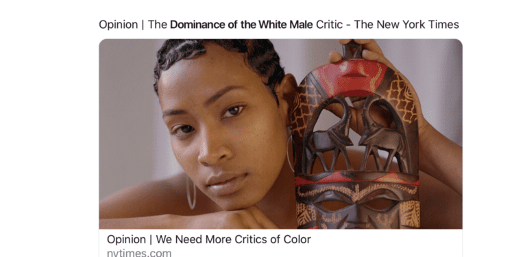 A New York Times headline: “The Dominance of the White Male Critic.”