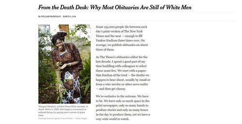 From the Death Desk: Why Most Obituaries Are Still of White MenBy WILLIAM McDONALD MARCH 8, 2018