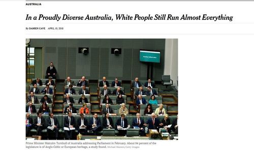 In a Proudly Diverse Australia, White People Still Run Almost EverythingAnd that’s why Australia is such a notorious hellhole that all these nonwhites keep trying to move there.By DAMIEN CAVE APRIL 10, 2018
