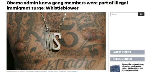 Obama admin knew gang members were part of illegal immigrant surge: Whistleblower, By Stephen Dinan, Washington Times, May 24, 2017The Obama administration knowingly let in at least 16 admitted MS-13 gang members who arrived at the U.S. as illegal immigrant teenagers in 2014, a top senator said Wednesday, citing internal documents that showed the teens were shipped to juvenile homes throughout the country.