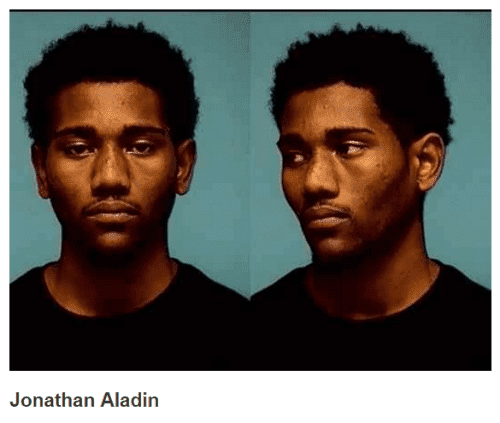Allyn Gibson attempted to stop the alleged thief, Jonathan Aladin (right) from leaving the store and tried to take a photo him as he bolted. Gibson got whacked in the face with his own phone. Aladin then reportedly ran while throwing the two bottles of wine on the floor, becoming "violent" and "grabbing and hitting Allyn." Aladin ran out with two females who were with him in the store. Gibson followed and tried to detain the alleged shoplifter again on the street.