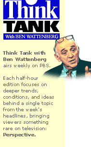 Even more comic was Wattenberg's behavior when we taped his PBS TV show Think Tank. (Me versus two critics and Wattenberg as a self-declared 'immoderator.” Balance!) He made the very common error of claiming that Alien Nation advocates a shift to white immigration, instead the “time-out" from all immigration I actually recommend on p. 262. I challenged him. Confidently, he started to read something from his lectern. It began “Brimelow says. . .”