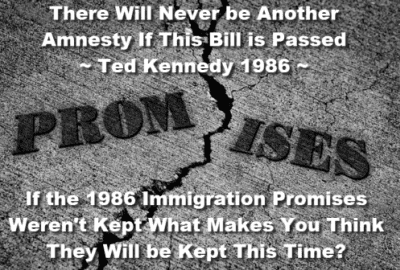 That's because we've documented here that all of the promises made by Ted Kennedy and other contemporary immigration enthusiasts during the passage of the 1965 Immigration Act were broken. See So Much for Promises – Quotes Re 1965 Immigration Act, by Joe Fallon, originally published in the Social Contract, Spring 1999.
