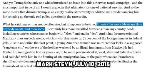 America has more Mexicans than anybody needs, and then some. It certainly has more unskilled Mexicans than any country needs, including countries whose names begin with "Mex-" and end in "-ico". And it has far more criminal Mexicans than anybody needs, which is why they make up 71 per cent of the foreign inmates in federal jails.Great minds think alike. Especially about immigration!