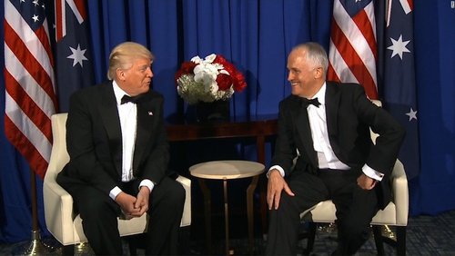 Prime Minister Malcolm Turnbull isn't known for being a comedian but he tried some daring Donald Trump material on a room full of journalists in Canberra last night. He gave a tongue-in-cheek speech, which Nine's Political Editor Laurie Oakes has decided to reveal, at Parliament House's annual Mid Winter Ball.President Trump should take this opportunity to withdraw all State Department and U.S. Citizenship and Immigration Services personnel in Australia and Nauru and Manus Island who are processing these fraudulent refugees, fraudulent because Australia says they are fraudulent.Usually the prime minister's address is off the record, but Oakes—who did not attend the dinner and does not believe reporting should be banned at events hosted by journalists—is making it public.