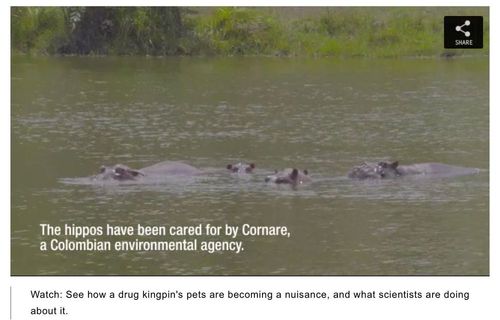 Pablo Escobar’s Escaped Hippos Are Thriving in ColombiaI was surprised to learn that hippos aren’t actually tutu-wearing ballet enthusiasts as I had assumed, but are highly dangerous, just like in Jon Voight movies.Can the dangerous animals be stopped from taking over more territory?
