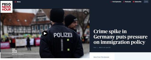 Crime spike in Germany puts pressure on immigration policy, PBS NewsHour, February 7, 2018John Yang: As we reported earlier, German Chancellor Angela Merkel announced a deal to form a new coalition government. In the last election, she lost seats in Parliament to the right-wing Alternative for Germany party, or AFD.