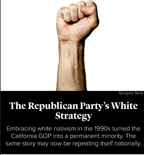 Peter Beinart repeats in The Atlantic in “The Republican Party’s White Strategy the conventional wisdom about how California Republicans shot themselves in the foot by supporting immigration restrictionist Proposition 187 in 1994: