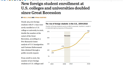 New foreign student enrollment at U.S. colleges and universities doubled since Great Recession, Pew Research, November 20, 2017