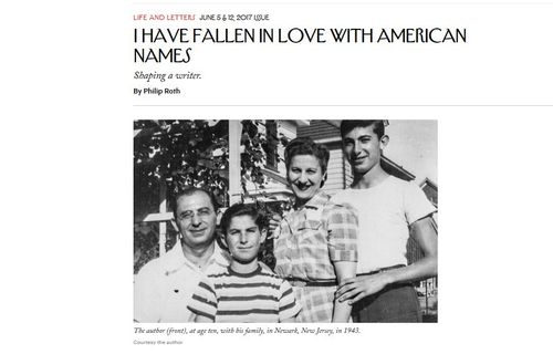 From The New Yorker, an interesting self-portrait of growing up Jewish and American in mid-Century America by Philip Roth, author of Portnoy’s Complaint and American Pastoral. Roth is one of the survivors from a generation formed before the Sixties and before the subsequent rise of globalism, along with Woody Allen, Ralph Lauren, and, perhaps, Bob Dylan. (Here’s Dylan’s Nobel lecture.)