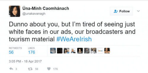 Here's my roundup of the "Ireland is too white" stories.The Tweet at right is from Úna-Minh Kavanagh, no relation to Brett Kavanaugh, she was adopted from Vietnam by Irish parents.