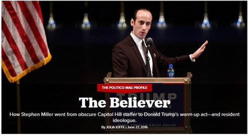 Julia Ioffe in Politico has a long article about Donald Trump’s immigration idea man and warm-up act Stephen Miller. She intends to insinuate that the young staffer is some kind of Goebbels / Father Coughlin / Huey Long enemy.