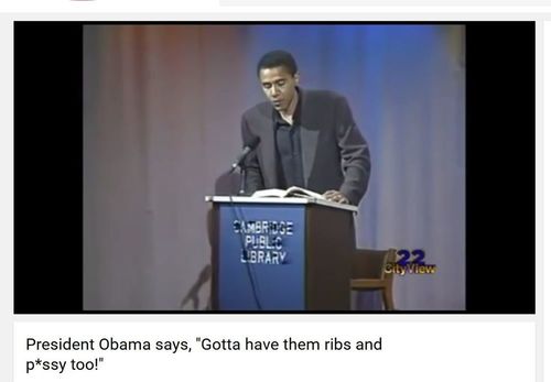 It's reported speech, he's quoting some black friends who are less educated than he is. Obama not only read, in public, a selection containing the word "p*ssy", but read the entire book for sale as an audio book. There are two examples of "p*ssy", six examples of the F-word, mostly in compound with "mother" (this is reported African-American speech) and nineteen examples of the "n-word", a word Obama is allowed to use and we're not.