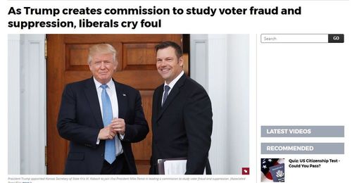 As Trump creates commission to study voter fraud and suppression, liberals cry foul, By Stephen Dinan and Dave Boyer, Washington Times, May 11, 2017President Trump established a commission Thursday to study voter fraud and suppression, tapping Vice President Mike Pence and Kansas Secretary of State Kris W. Kobach to lead an effort that is drawing fire even before its first meeting.
