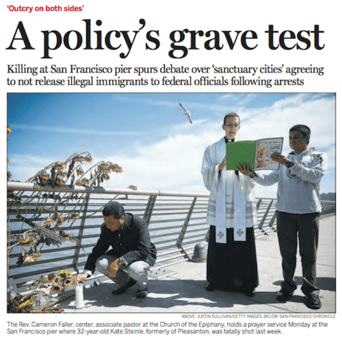 The timing for the anti-enforcement rally was rather insensitive, to say the least. The Catholic church was appalling in its arrogant disregard toward crime victims of illegal aliens then, as it is today toward the Steinle family.