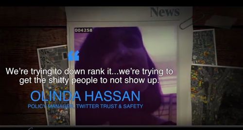 - Olinda Hassan, Policy Manager for Twitter Trust and Safety explains, “we’re trying to ‘down rank’… shitty people to not show up,” “we’re working [that] on right now”