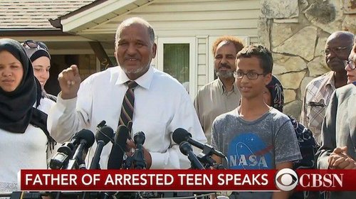 Pretty nice; but why is this kid living in our country? That’s not a rhetorical question; I’d really like to know.The full Radio Derb playbill:The best I’ve been able to come up with, digging around, is that Ahmed’s father, who not only has “Mohamed” as a last name but also as a first name, came here as an immigrant thirty years ago. I haven’t been able to find out what category of visa he was admitted on. The sources describe him as, quote, “a former customs worker at Khartoum International Airport [who] earned a degree in philosophy from Cairo University in Khartoum,” end quote…