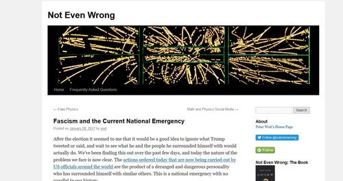 Meanwhile, Trump Derangement Syndrome rages on in the intelligentsia. Here’s a data point at random from that demographic.Among the non-political blogs I follow is one called “Not Even Wrong,” run by mathematician Peter Woit [Email him] of Columbia University. It’s one of the better blogs on math and physics.