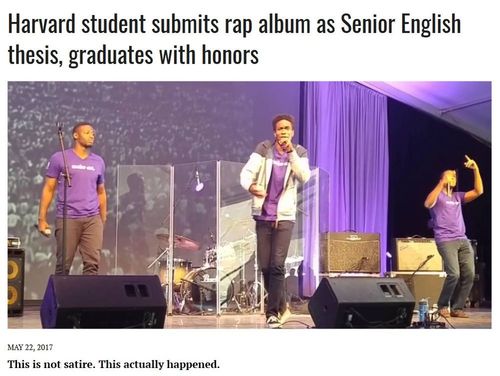 A Harvard student of English, name of Obasi Shaw, has submitted a rap album as his senior thesis. The rap songs are about — can you guess? — "the African American experience."