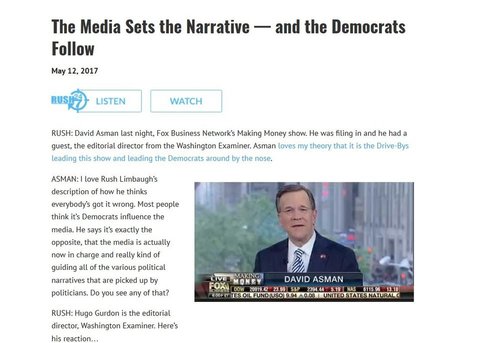 Rush Limbaugh noticed this political rearrangement in a some radio segments over the last few months including Evidence: The Media Runs the Democrats (May 8) and The Media Sets the Narrative — and the Democrats Follow (May 12).