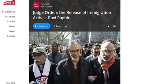 Judge Orders the Release of Immigration Activist Ravi RagbirHasn’t this embezzler had “the freedom to say goodbye” in the 12 years he’s been dodging deportation?Jan 29, 2018 · by The Associated Press and Beth Fertig