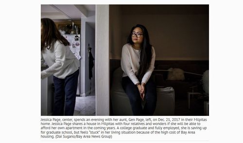 For renters, the new normal: lower expectations and shrinking apartments, San Jose Mercury News, January 7, 2018Gabriel Rodarte grew up in San Jose and has worked there for 30 years as a mailman for the U.S. Postal Service. Making his rounds, he says, “I see it all. I see three families living inside one small apartment, or total strangers who share a room. None of them stay very long; they can’t afford it.”