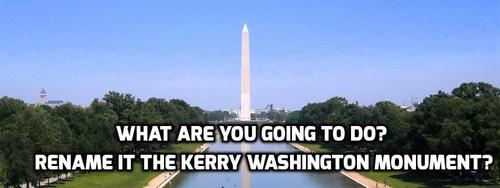 Or maybe the state of Washington could be named after Denzel, while the 555-foot tall phallic symbol in the National Mall could be renamed the Kerry Washington Memorial to less its toxic masculinity.