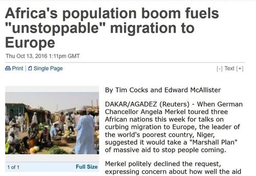Africa’s population boom fuels “unstoppable” migration to EuropeThu Oct 13, 2016 1:11pm GMT