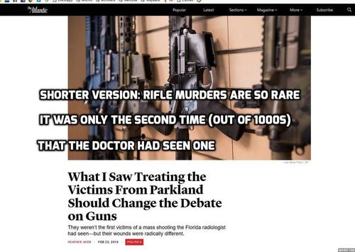 This is a slightly horrifying account from a Florida radiologist, whose presence as an Atlantic writer is explained by the fact she's attacking gun rights.