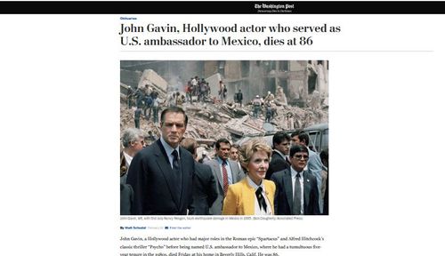 And “[w]hen Mr. Gavin resigned his ambassadorship in 1986, a column in Mexico City’s El Universal newspaper described him as ‘arrogant, imprudent and meddlesome’ and as ‘one of the most ghastly ambassadors’ to Mexico in years.”