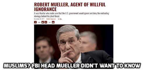 Robert Mueller, Agent of Willful Ignorance, By Robert Spencer, FrontPageMag.com, November 28, 2017It was Mueller who made sure that the U.S. government would ignore and deny the motivating ideology behind the jihad threat.