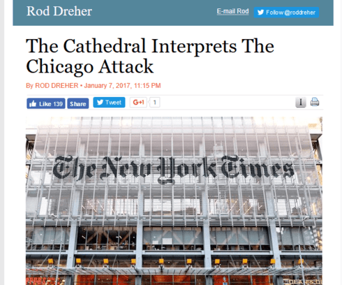 Earlier today in New Orleans, I had been having lunch with some friends, both liberals and conservatives. The issue of how so many Americans now don’t have much interest in truth (as distinct from believing what they want to believe) came up. Of course there was the matter of Trump’s dishonesty, but also the matter of the media’s ethics. I said that I read and subscribe to the Times mostly for the same reason Soviets used to read Pravda back in the day: to know what the Official Story the ruling class wishes to tell itself is. That’s not to say that the Times doesn’t feature excellent reporting and good writing; it does. But I don’t trust it to tell me the truth. I trust it to reveal to me the narrative that the greater part of the ruling class (minus the Republican elites) tells itself. That’s a useful thing to know, as long as you know that you’re only getting a take.Okay, so Rod Dreher has figured out the truth about the media, but he's always been a total weak sister on racial issues. He was also a total cuckservative saboteur during Trump's campaign-examples:What’s interesting is that elite journalists largely lack the epistemic humility to understand what they’re doing. Do you think Michel Martin, Cheryl Corly, or anybody in the NPR newsroom who worked on today’s Chicago report were genuinely aware how their report would sound to someone who was not liberal?
