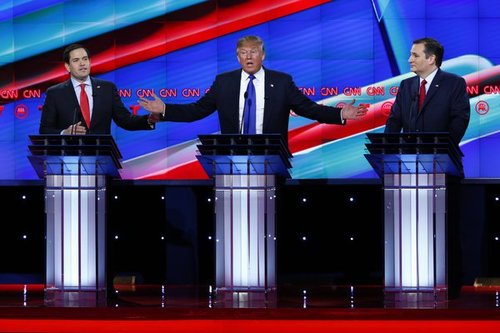 Trump also landed some strong counter-punches later in the debate, notably labeling Rubio a "choke artist" and Cruz a "liar." He also had a strong close, drawing a distinction between himself as a man of action and the other candidates merely as politicians. The optics also favored Trump, as he stood in the center and Cruz and Rubio both sniped at him. And it seems pretty unlikely that Marco Rubio, of all people, is going to be able to marginalize Donald Trump as a bad businessman.
