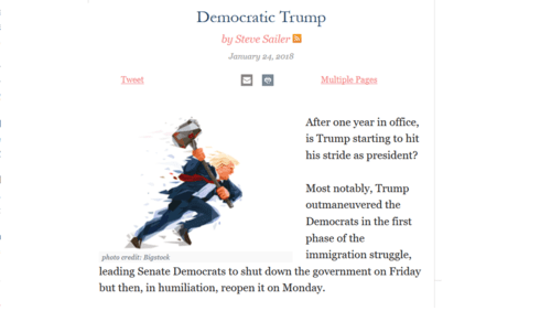Most notably, Trump outmaneuvered the Democrats in the first phase of the immigration struggle, leading Senate Democrats to shut down the government on Friday but then, in humiliation, reopen it on Monday. …